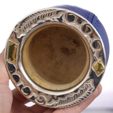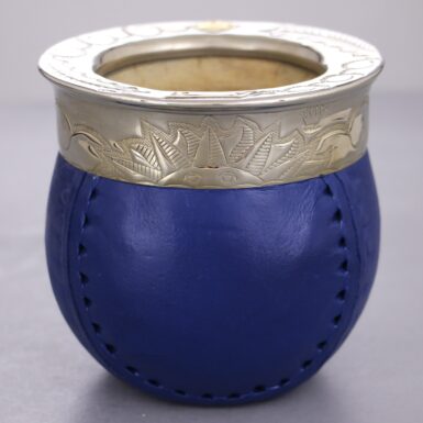 Calabaza con un grosor superior a 12mm, forrada de manera artesanal. La tradición se ha pasado de generación en generación  por los artesanos del Uruguay, utilizando cueros de excelente calidad, hilos gruesos, alpaca de alta calidad, solidez. La belleza de los cincelados hechos manualmente para poder garantizarte un mate espectacular que perdure en el tiempo.