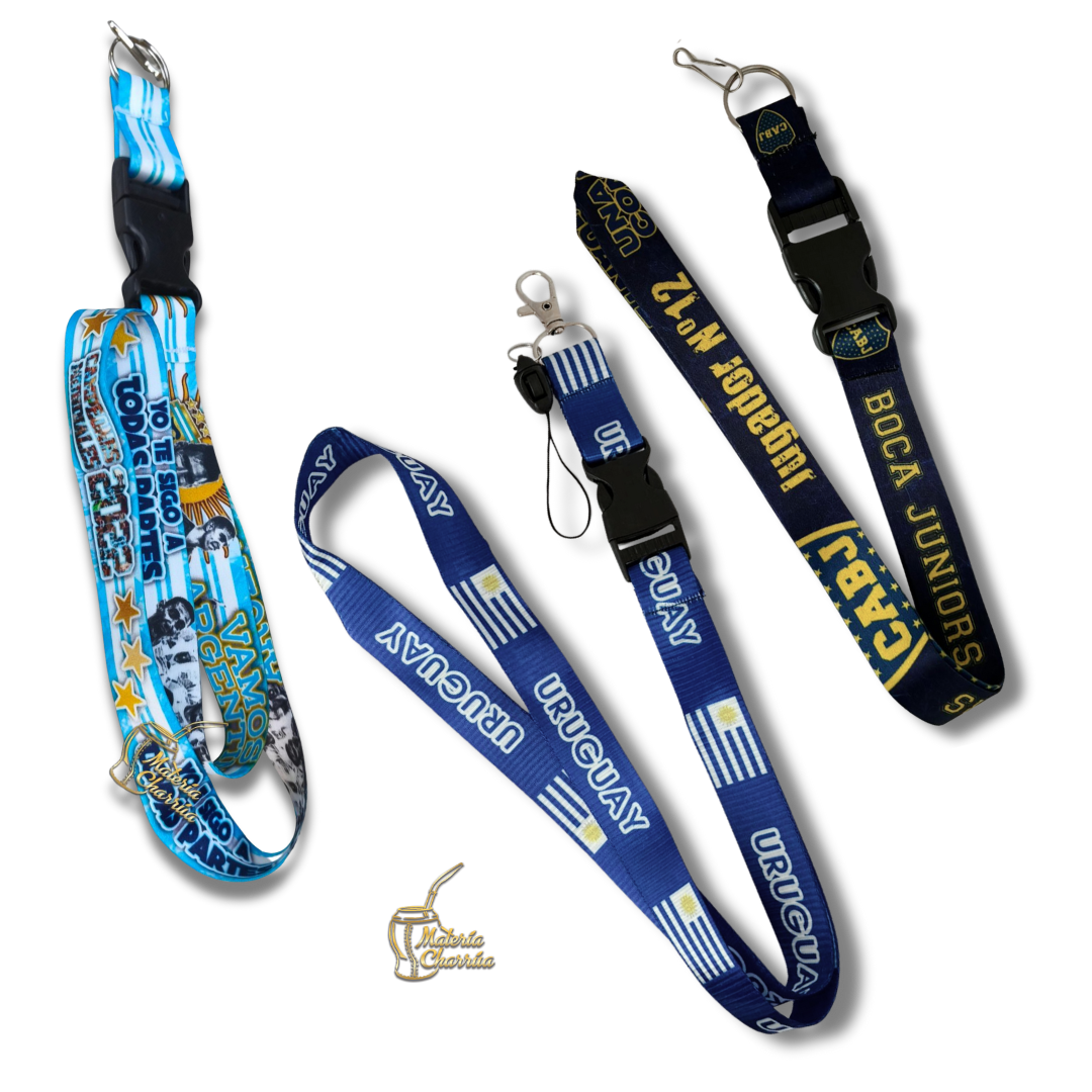 Cordones porta gafete o porta llaves con diseños oficiales de River Plate, Boca Juniors y la Selección Argentina y Uruguay