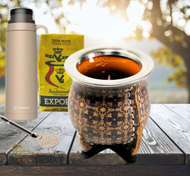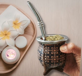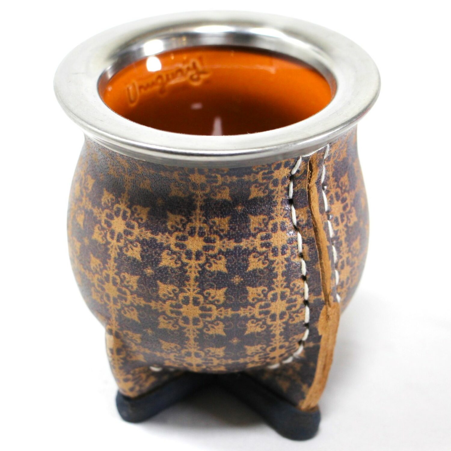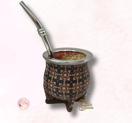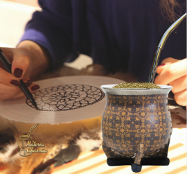 Mates de cerámica horneada alta temperatura, delicadamente forrados en cuero, estampados con motivos cálidos. Virolas de acero inoxidable que garantizan años de durabilidad e higiene.