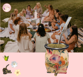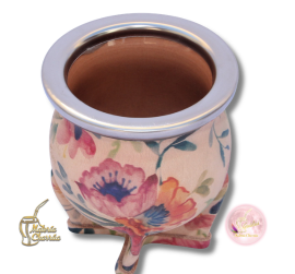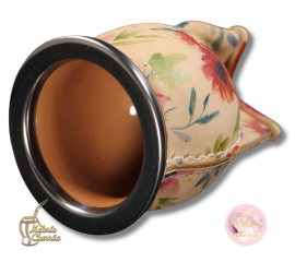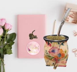 Mate de cerámica horneada alta temperatura, delicadamente forrada en cuero estampado alta resistencia, estampado con motivos naturales o abstractos. Virola de acero inoxidable que garantizan años de durabilidad e higiene.