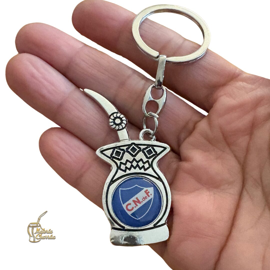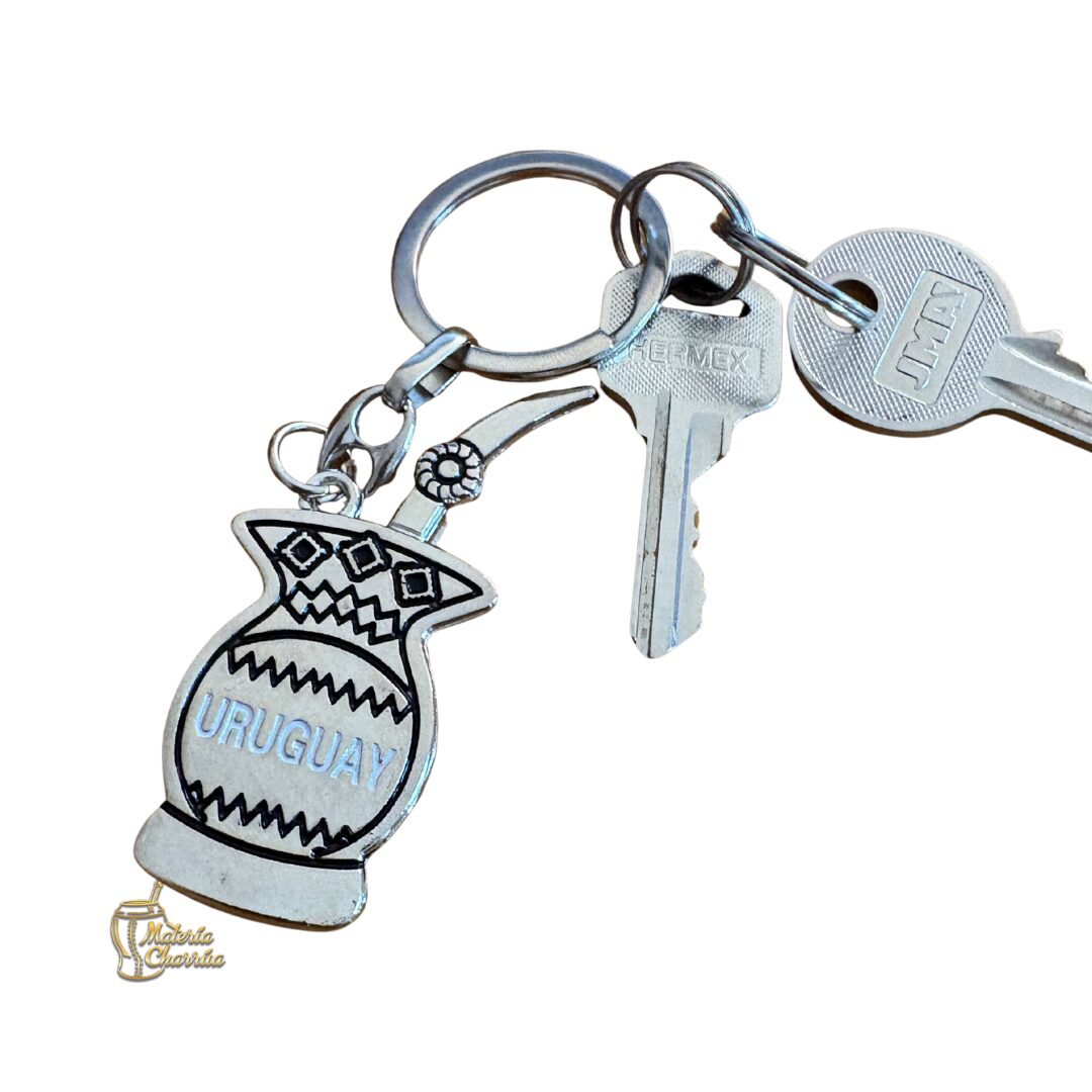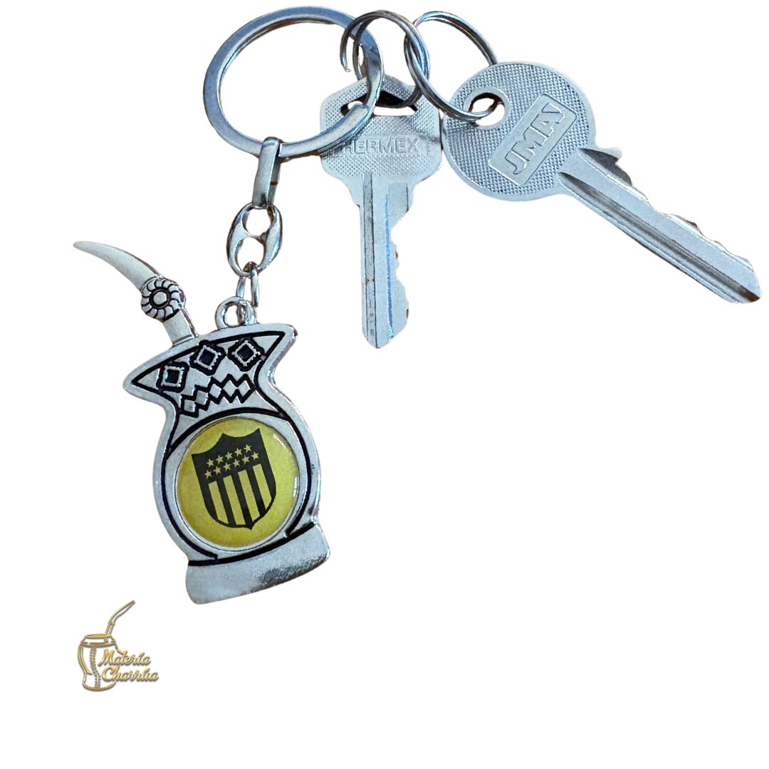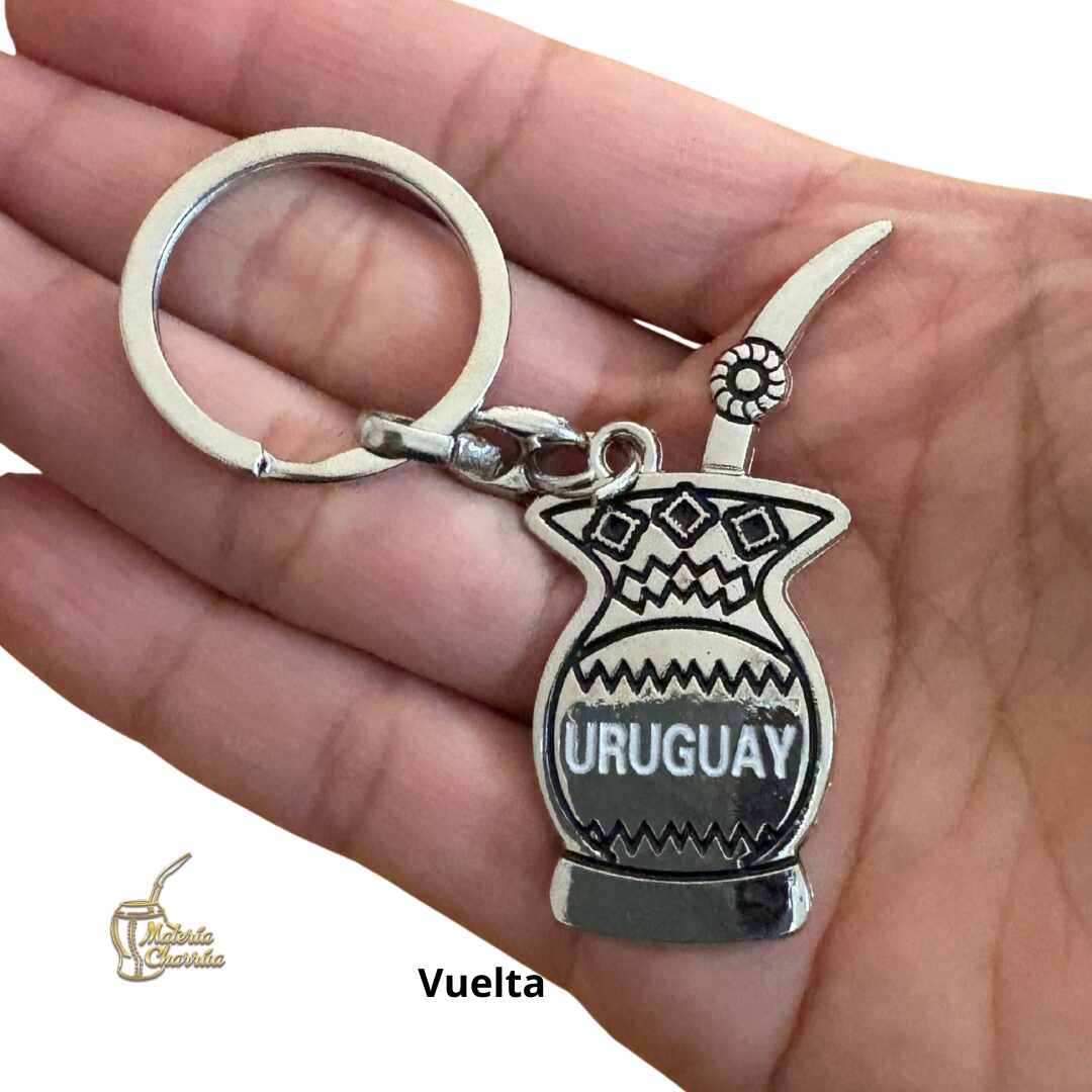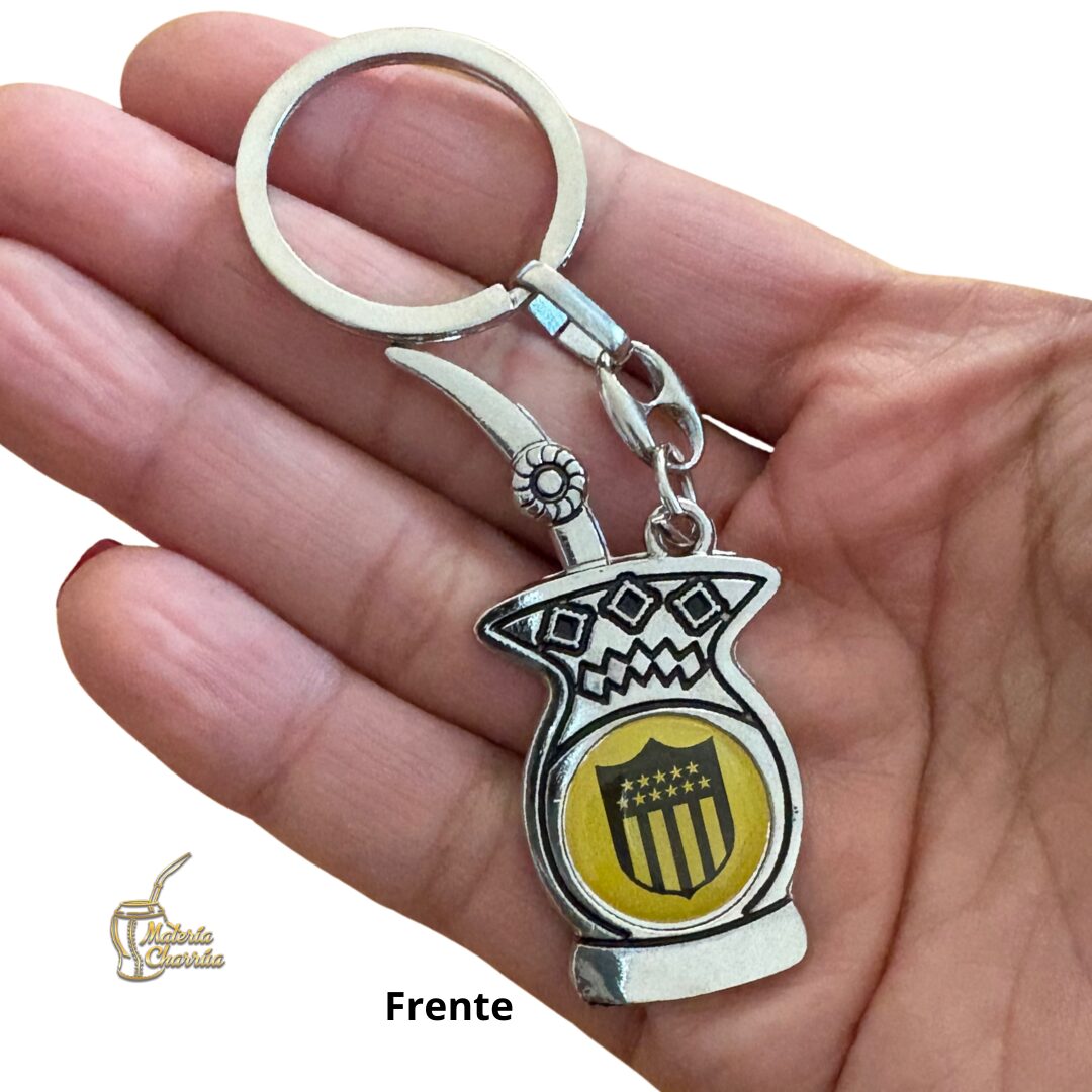 Precioso llavero de metal, en forma de mate, con doble vista