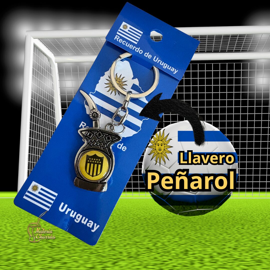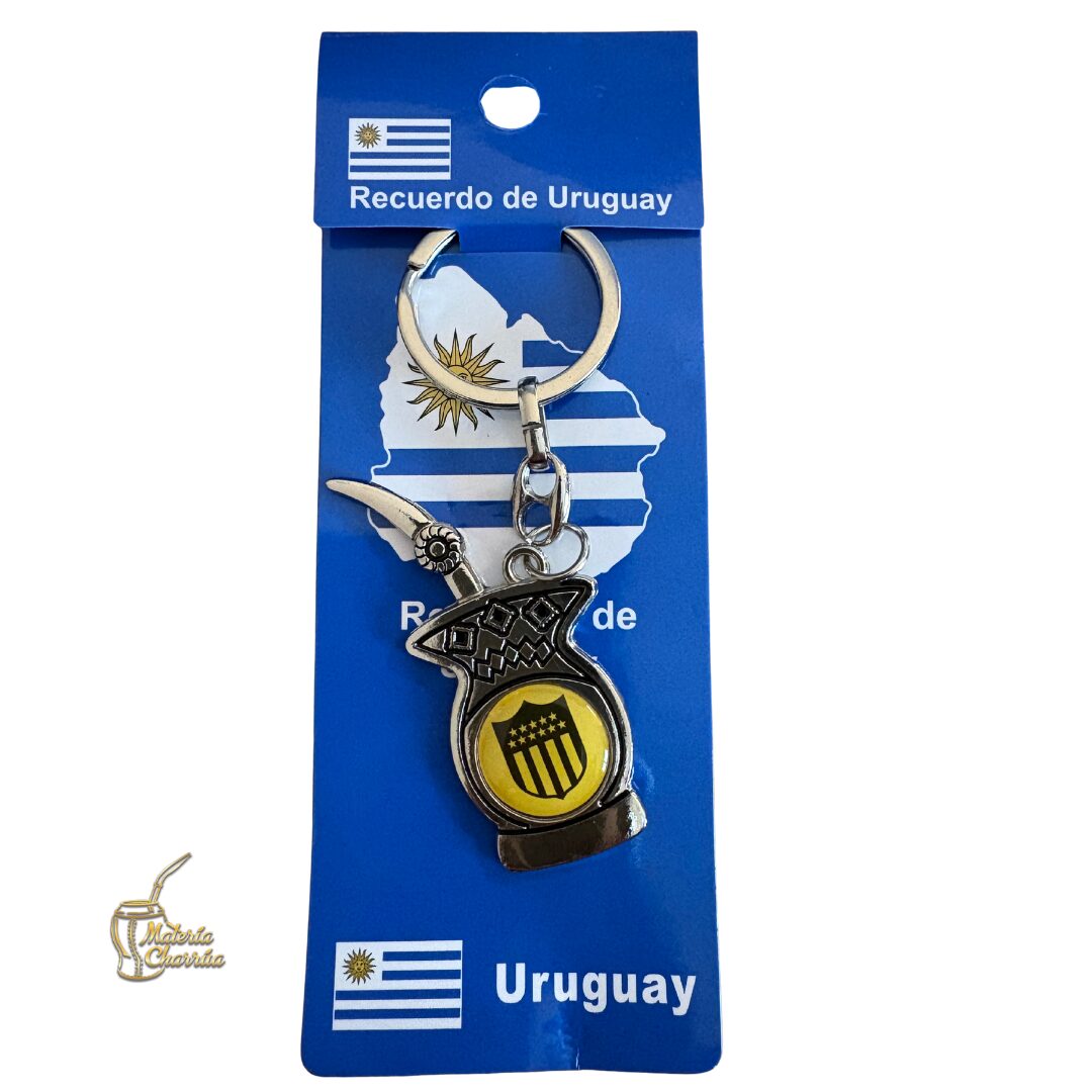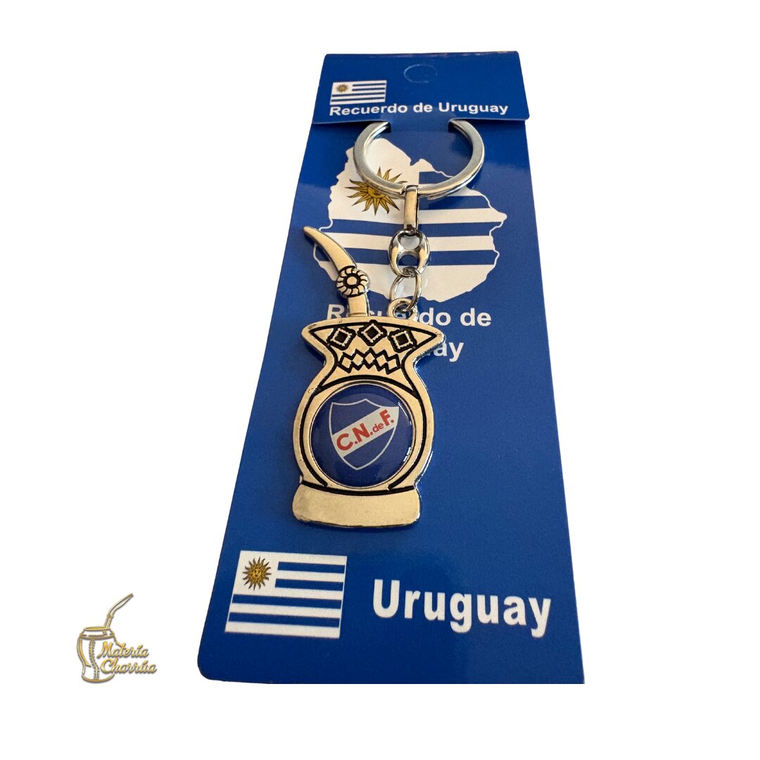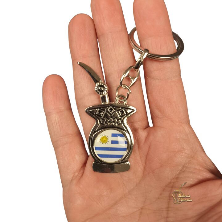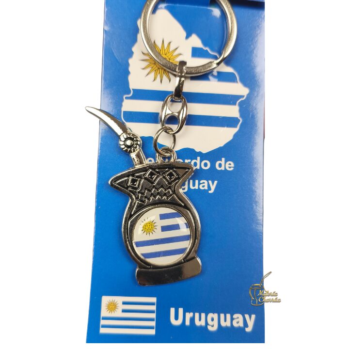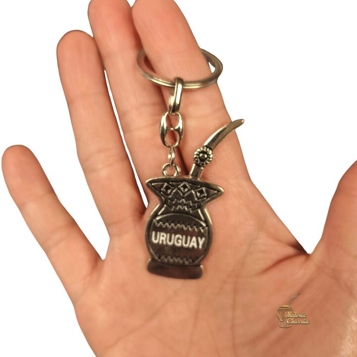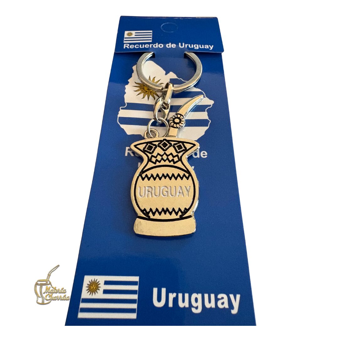 Precioso llavero de metal, en forma de mate, con doble vista