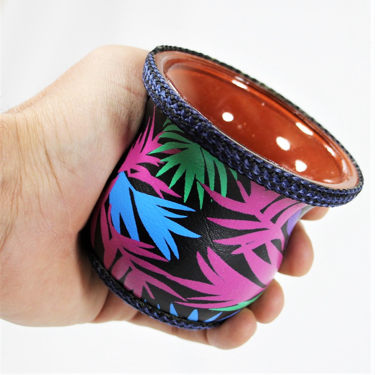 Mate de vidrio templado, delicadamente forrados en símil suave al tacto, estampado con motivos naturales, destaca en durabilidad e higiene.